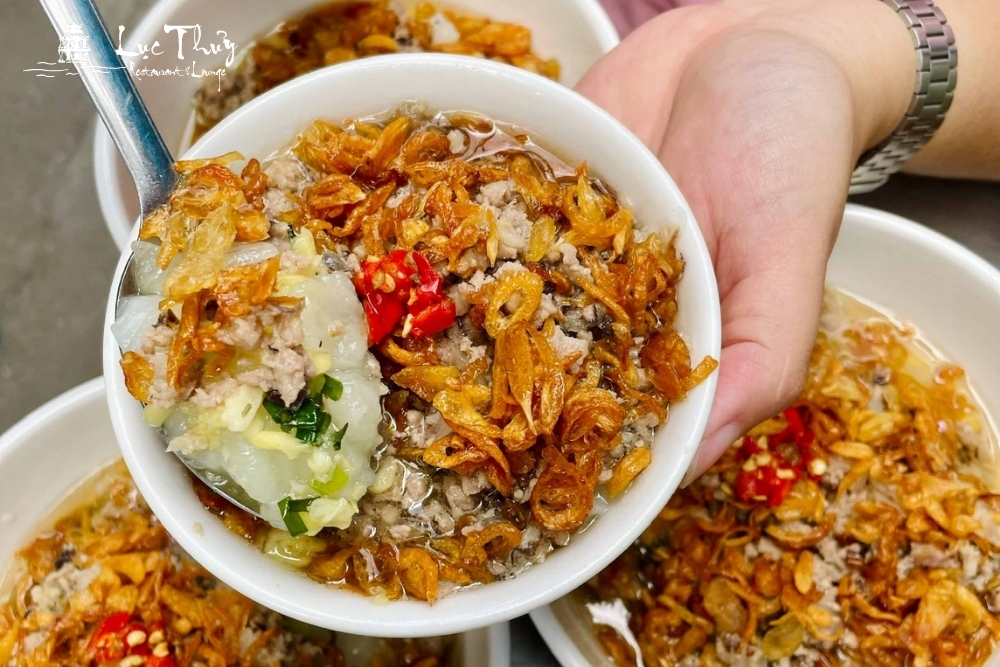 Cháo được ninh cùng nước xương sườn non, mang lại vị ngọt thanh tự nhiên. Khi thưởng thức, một bát cháo nóng hổi sẽ được rắc thêm thịt sườn băm nhỏ, ruốc nấm hương thơm lừng, hành phi giòn tan và không thể thiếu những chiếc quẩy chiên vàng ruộm, giòn tan. Sự tương phản giữa cháo nóng, mềm mại và quẩy giòn béo đã tạo nên một trải nghiệm ẩm thực hoàn hảo, thường được người dân địa phương chọn làm món quà chiều ấm lòng.