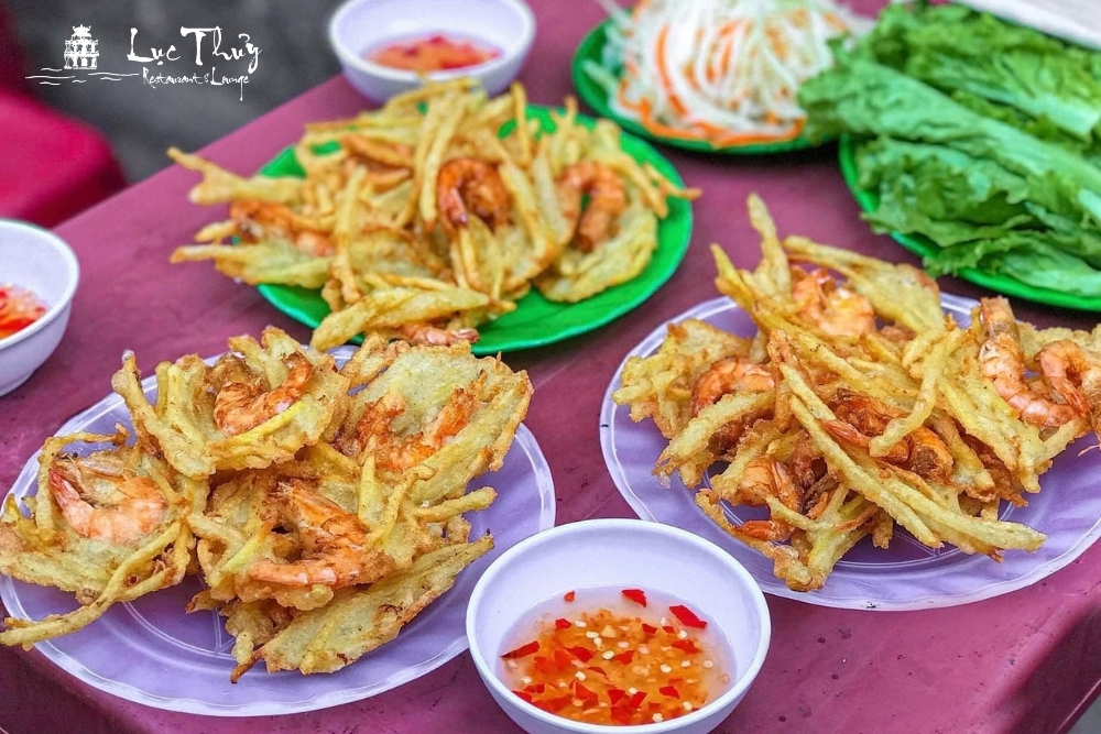 Bánh Tôm Hồ Tây là món ăn đường phố Hà Nội nổi tiếng có nguồn gốc từ khu vực Hồ Tây. Món ăn này được chế biến từ tôm tươi nguyên con, được bọc trong một lớp bột chiên giòn tan.