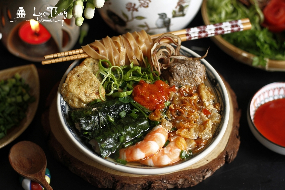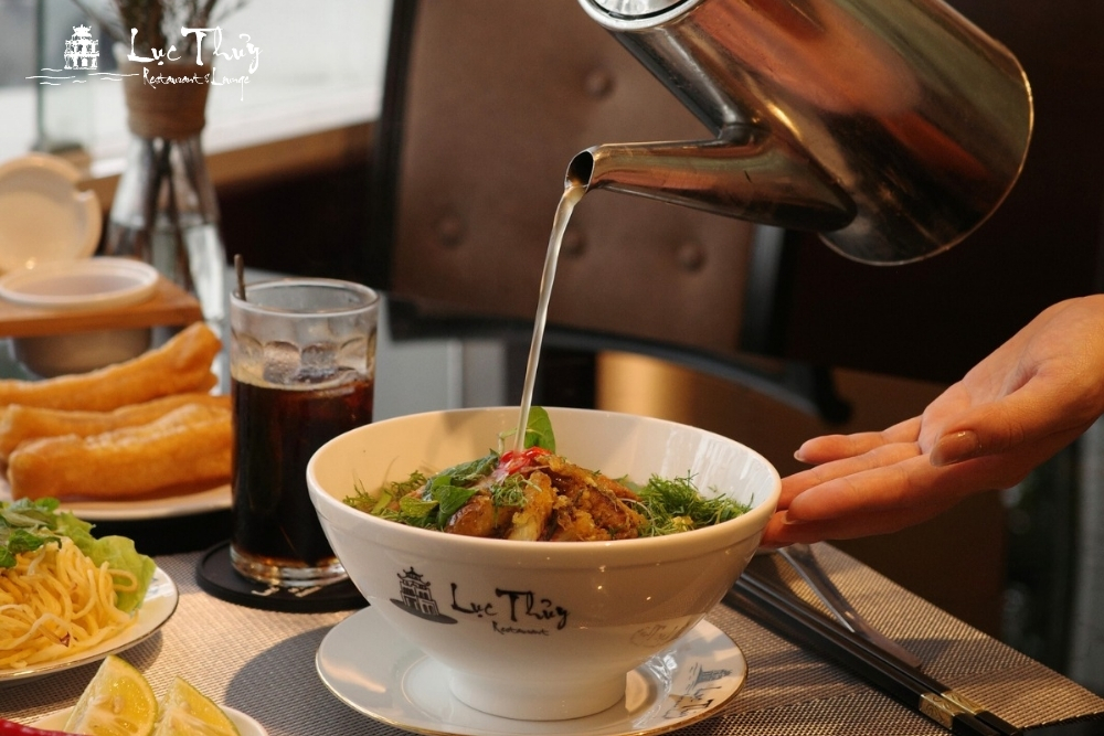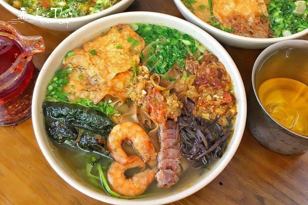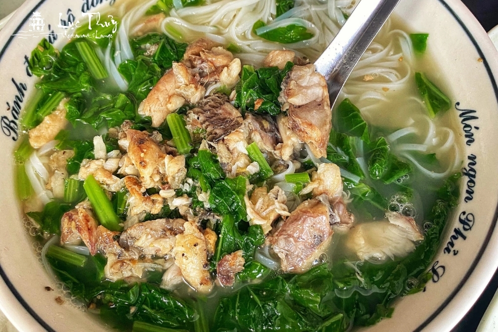 Đặc biệt, bánh đa cá tại Lục Thủy được nâng tầm bằng quy trình chế biến khắt khe. Cá được tuyển chọn từ những con cá tươi ngon nhất, lọc bỏ hoàn toàn xương, chiên bằng dầu sạch để đạt độ giòn tan nhưng không ngấm dầu. Nước dùng trong vắt, thanh tao, được nêm nếm theo công thức truyền thống giúp giữ trọn vẹn vị ngọt từ cá.