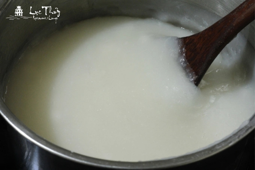 Bắc nồi bột lên bếp, bật lửa nhỏ đến vừa. Trong quá trình nấu, khuấy liên tục theo một chiều để bột không bị khê đáy nồi. Khi bột bắt đầu sánh lại, tăng tốc độ khuấy, lúc này bột sẽ dần chuyển sang trạng thái dẻo quánh, trong mịn.