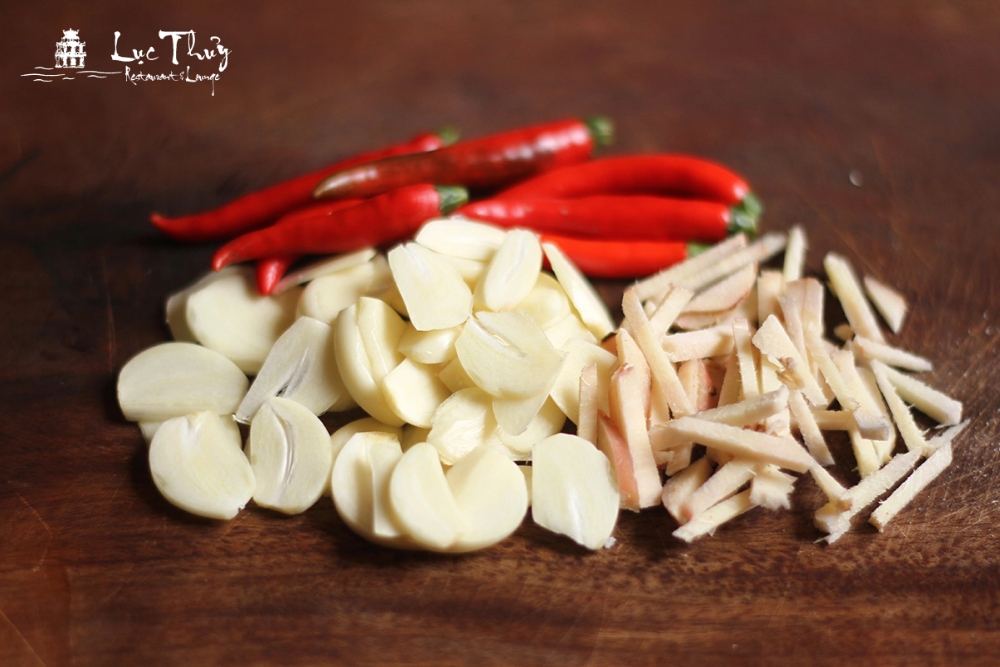 - Sơ chế ớt, tỏi: Ớt rửa sạch, thái lát. Tỏi bóc vỏ, thái lát mỏng.