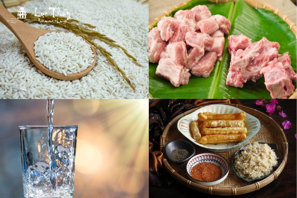 - Gạo: 150g gạo tẻ loại ngon (nên chọn gạo cũ hoặc gạo có độ nở tốt), 50g gạo nếp cái hoa vàng.