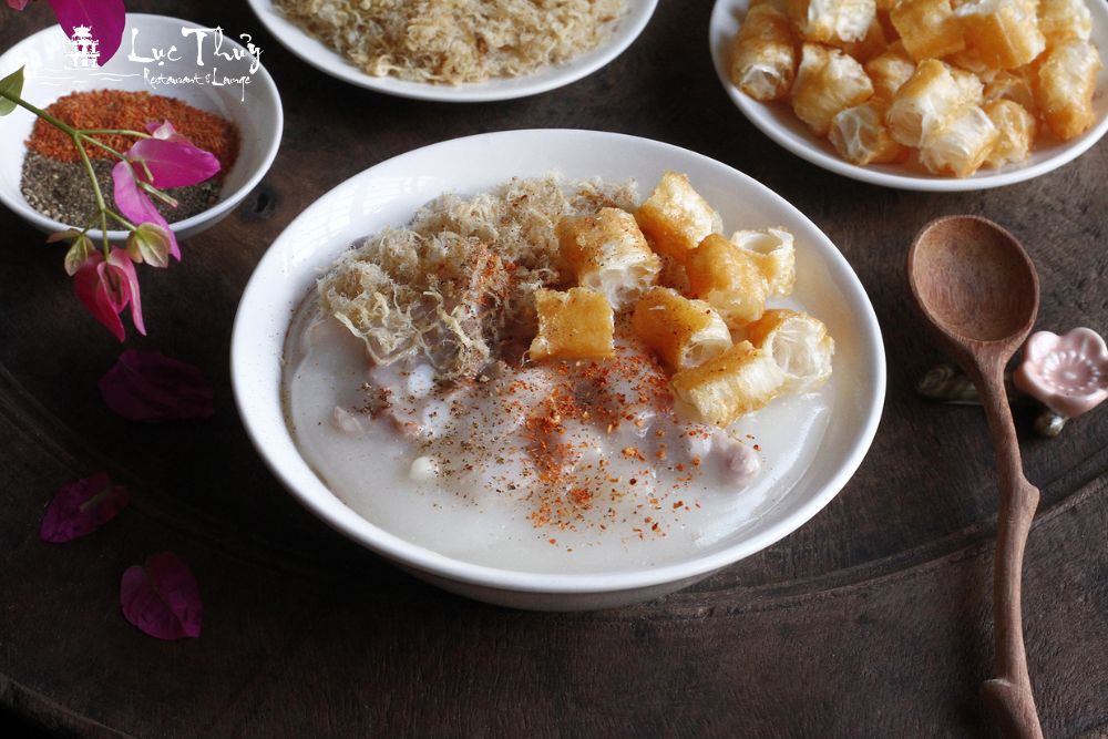 - Các món ăn kèm: Ruốc nấm hương/ ruốc thịt, quẩy giòn tan, hành phi, hành lá.