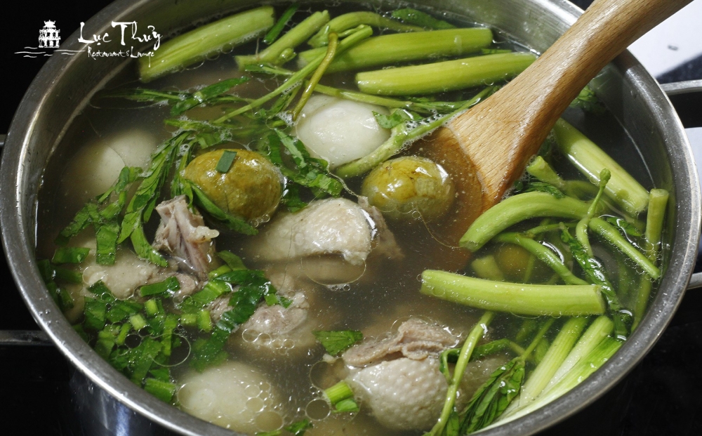 - Rau ăn kèm: Rau ngổ (rau ôm), hành lá.