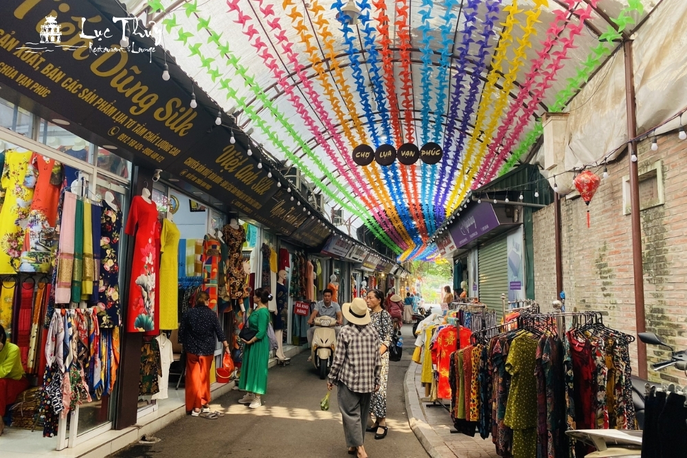 Làng lụa Vạn Phúc không chỉ là nơi sản xuất mà còn là một địa điểm du lịch Hà Nội hấp dẫn, nơi du khách có thể trực tiếp trải nghiệm văn hóa làng nghề truyền thống. Khi đến thăm làng, du khách được chiêm ngưỡng không gian kiến trúc cổ kính của cổng làng, cây đa, giếng nước, sân đình, và đặc biệt là nhà thờ Tổ nghề dệt. Con đường làng lát gạch với những cửa hàng lụa bày bán đa dạng sản phẩm, tạo nên một không gian mua sắm và tham quan độc đáo.