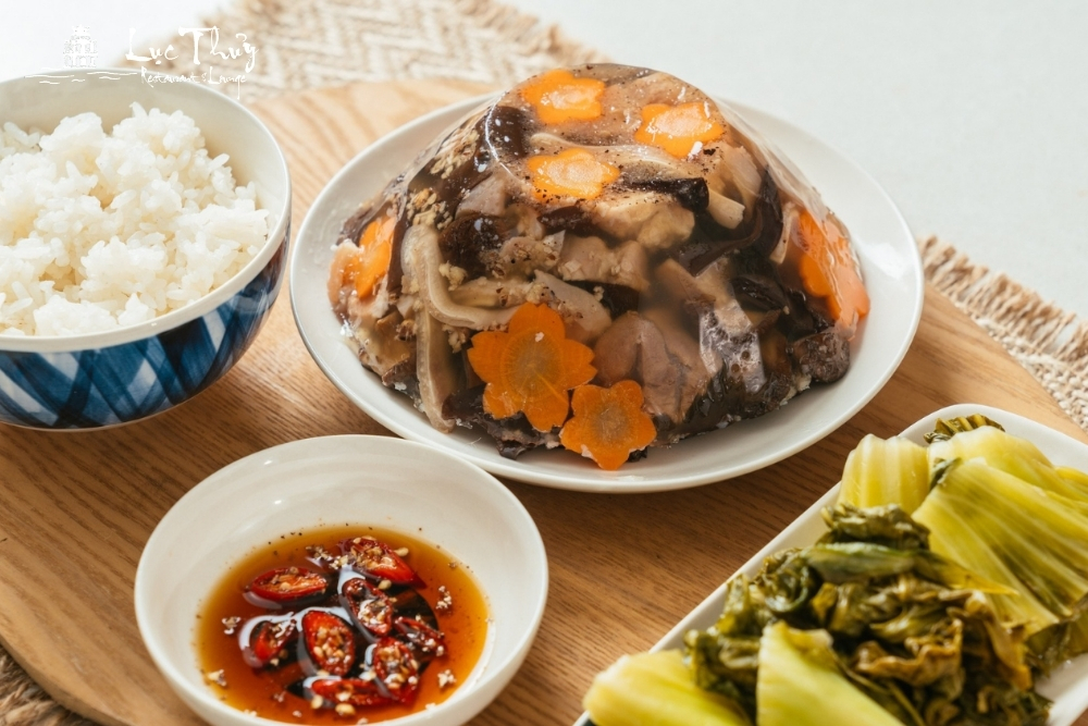 Để có một nồi thịt đông chuẩn vị, người đầu bếp thường chọn thịt chân giò có cả bì và thịt nạc, kết hợp cùng mộc nhĩ đen, nấm hương thơm lừng và tiêu sọ cay nồng. Bí quyết nằm ở việc ninh thịt thật nhừ để collagen từ bì lợn tiết ra, hòa quyện với vị ngọt của thịt và hương thơm của nấm. Khi thưởng thức, từng miếng thịt mềm mượt hòa cùng lớp đông trong veo như hổ phách, ăn kèm với dưa cải muối chua và cơm nóng sẽ tạo nên một sự bùng nổ hương vị. Thịt đông không chỉ là món ăn, nó còn là biểu tượng của sự tinh tế trong cách người Việt tận dụng thời tiết để sáng tạo nên mỹ vị nhân gian.