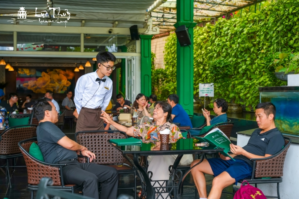 Đội ngũ nhân sự: Nhân viên phục vụ tại Lục Thủy được đào tạo khắt khe về nghiệp vụ nhà hàng khách sạn quốc tế. Với khả năng ngoại ngữ lưu loát và phong cách ứng xử thanh lịch, chúng tôi cam kết mang lại sự hài lòng tuyệt đối cho cả những thực khách khó tính nhất.