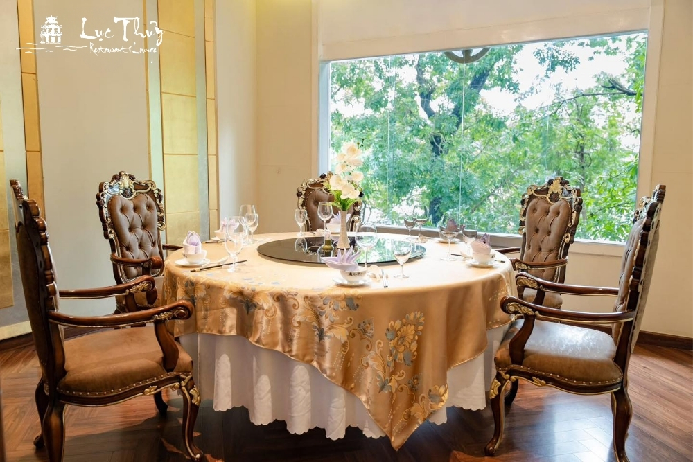 Hiếm có một nhà hàng tổ chức tiệc sinh nhật nào tại trung tâm Hà Nội lại sở hữu được "tọa độ" vàng như Lục Thủy. Nằm ngay trên phố Lê Thái Tổ, nhà hàng có tầm nhìn trực diện ra mặt nước Hồ Gươm xanh biếc, nơi Tháp Rùa hiện lên cổ kính và đầy uy nghiêm. Một bữa tiệc sinh nhật được tổ chức tại đây là một trải nghiệm thị giác tuyệt vời khi thực khách có thể tận hưởng làn gió hồ mát lành và ngắm nhìn nhịp sống yên bình của Hà Nội về đêm.